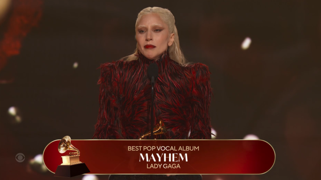 9:42PM – Gaga wins the category Best Pop Vocal Album for ‘Mayhem’ !!